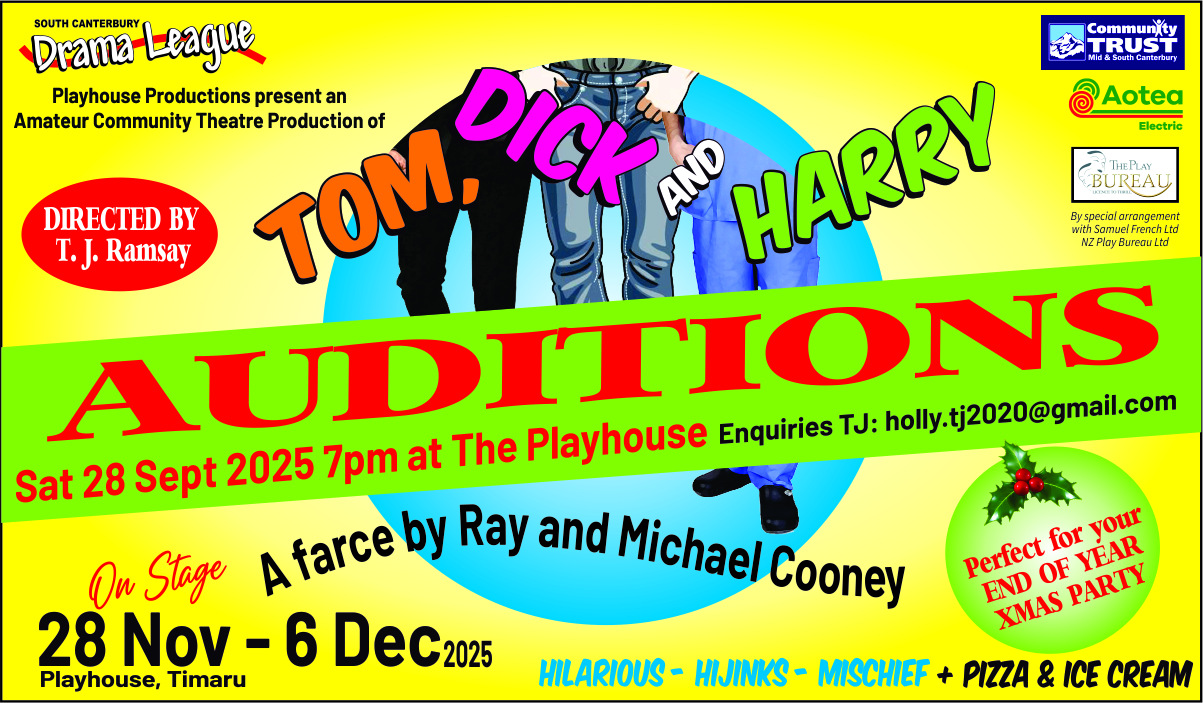 Playhouse Productions present an Amateur Community Theatre Production of Tom, Dick and Harry. A farce by Ray and Michael Cooney.